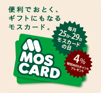 - 毎月25~29日の「モスカードの日」は1,000円以上の入金で4%のMOSポイント
